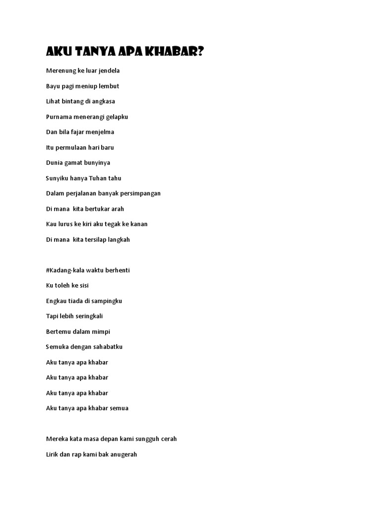 Aku Tanya Apa Khabar Lirik Madalynngwf