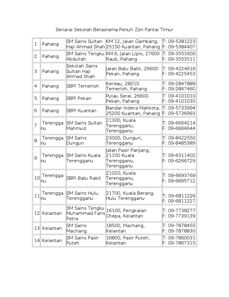 Senarai Sekolah Berasrama Penuh Senarai Sekolah Berasrama Penuh Beserta Alamat Dan No Telefon Dan Laman Web Opiranty